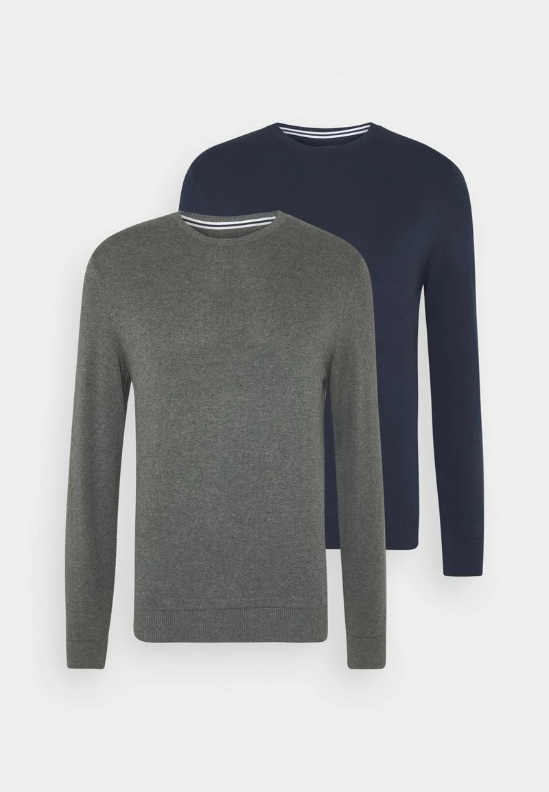 Pier One 2 PACK – Jersey De Punto – Dark Blue/mottled Dark Grey, Hombre